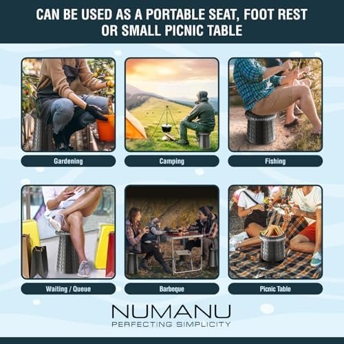 â¨ăENDLESS OPTIONSăNUMANU Portable Telescopic Collapsible Stool Chair has many usage options such as: Camping, Hiking, Waiting in Line, Gift, Live Concert Events, Plumbing, Construction, DIY/Fixing, Fishing, Gardening, Resting, Travel, Commuting, Bus, Train, Subway and More. Take your retractable folding outdoor stool along with you!