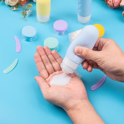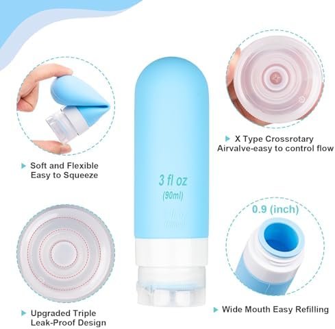 Silicone Leak Proof Travel Bottle: 3 oz tsa approved travel toiletry containers bottles feature a triple leak proof design with a sturdy flip-top lid and anti-drip valve that protects your travel size containers from spills, leaks, or drips during transportation.