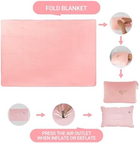 CONVERTIBLE TRAVEL AIRPLANE BLANKET: In addition to its warmth-keeping function, the miniature plush carrying case can be converted into an inflatable pillow. To inflate, pull up the air hose, pinch the valve at the bottom, and blow the air inside. To deflate, open the valve, pinch the bottom and let the gas out. The inflatable pillow fits perfectly in a zipper bag!