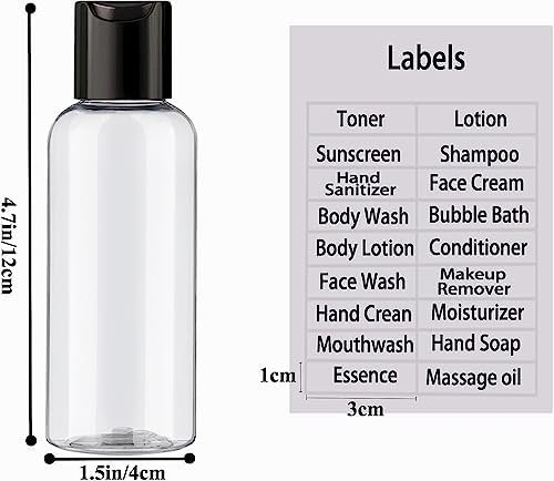 Travel size bottles containers can store liquids and toiletries such as shampoo,conditioner,essential oil, hand soap, body wash, lotion, sunscreen,cosmetics,makeup water,face toner and other skin care products and toiletries.