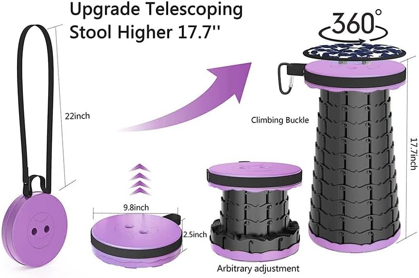 【Portable and Lightweight】The pack size is only 25cm in diameter and weighs just 1.0kg/2.2lbs,and with Cushion. This retractable stool is portable and lightweight,small and compact to place into luggage or storage.The adjustable strap makes the chair easy to carry in your hand or hanging on your shoulder. Ideal chair for everywhere you go and anytime you want to sit down,add Chair soft Cushion, feeling perfect!