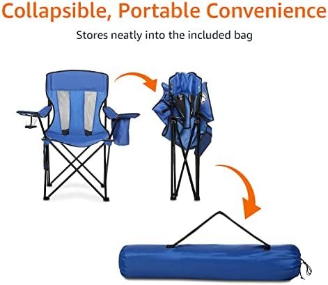 COMFORTABLE SEATING: Enjoy the outdoors with this large folding camp chair that features a mesh back