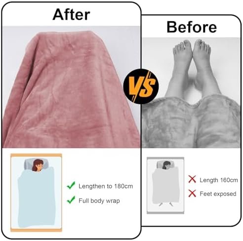 NEW LENGTHENED MODEL: Our travel blanket measures 70″x40″ (180x100cm), which makes up for its lack of length compared to the small size 63″x40″ (160x100cm) on the market. Our lengths are more practical.
