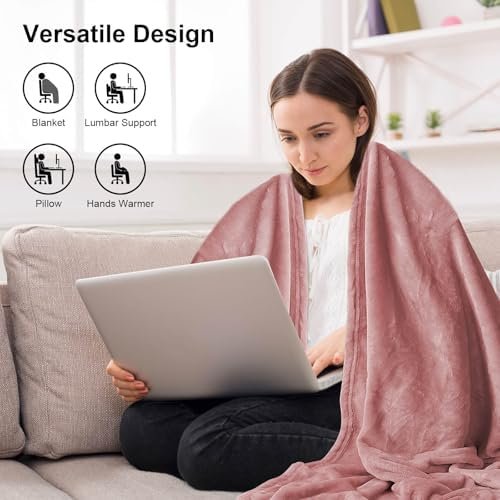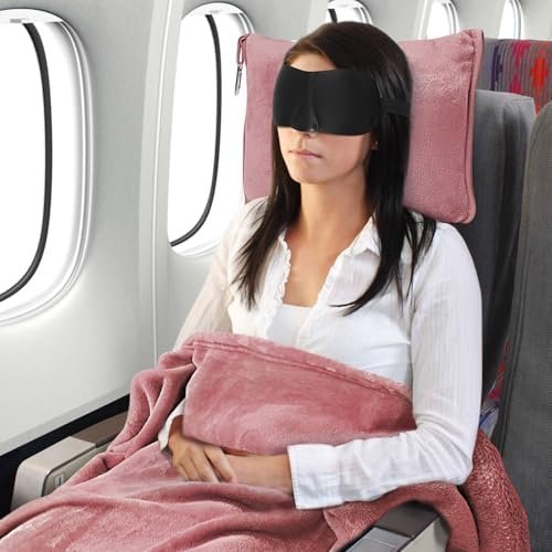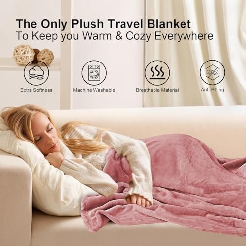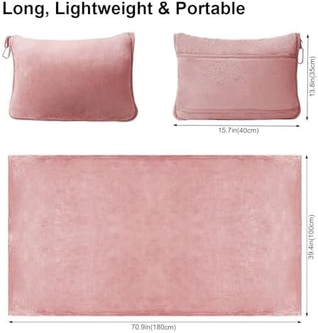 DAWNTREES Travel Blanket and Pillow – Travel Essentials Gifts on Airplane, Camping, Car, 2 in 1 Airplane Blanket with Soft Bag Pillowcase, Hand Luggage Sleeve and Backpack Clip.