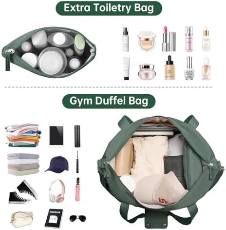 Dry Wet Separate Duffel Bag:This duffle bag for women offers a spacious main compartment to store your clothes and items. A zippered waterproof PVC lined pocket for wet clothes. In addition, this travel bag also gives an extra small makeup bag for easy storage