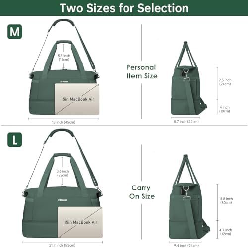 Extra Large Size:With dimensions of 20.5 x 8.8 x 15.7 inches, our new and improved gym bag offers even more space to store your clothes, towels, toiletries, shoes, and other essentials. Suitable for 5-7 days of travel, not recommended as a personal item bag.