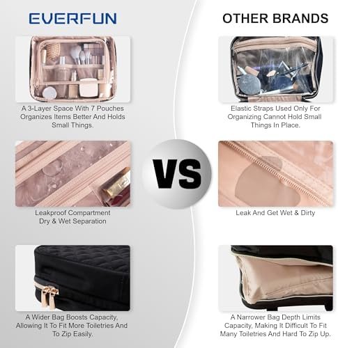 MULTIPURPOSE: EVERFUN’s compact toiletry bag is ideal for women, girls, travelers, heavy packers, and makeup lovers; Use it as a portable makeup organizer, bathroom bag, or storage for daily life, travel, gym, weddings, cruises, and outdoors.