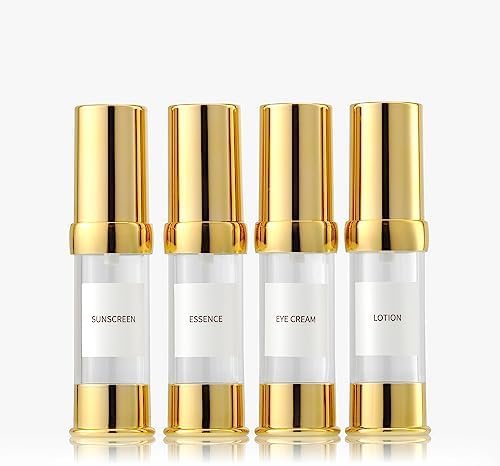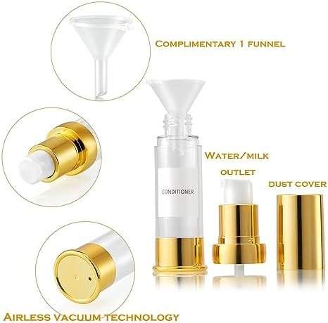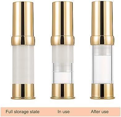 Noble Appearance & High Quality: This pump bottle dispenser for skin care, travel bottle, airless pump bottles, is composed of exquisite gold and transparent colors. The environmentally-friendly material can be reused and used safely. It can be used for lotion, hair oil, toner, liquid foundation, hand sanitizer, etc.