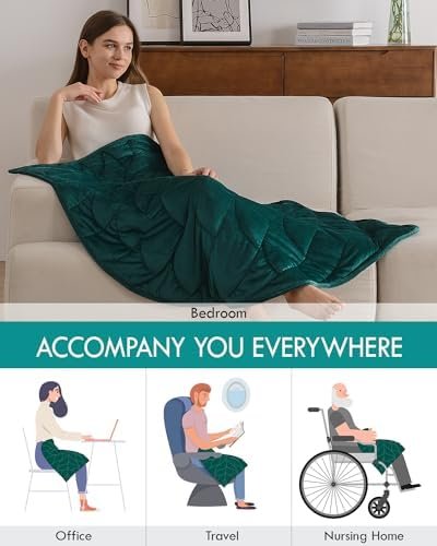 Chic Leaf-Shaped Design: With its unique leaf-inspired design, this travel weighted blanket isn’t just functional; it’s a visual delight. The cleverly crafted small weight modules ensure an all-encompassing comfort that feels like a warm embrace