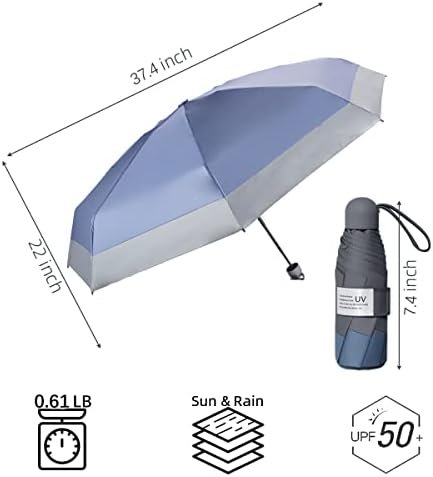 Compact umbrella for travel :This travel portable umbrella weighs only 0.6 lb,folds down to a mere 7.4 inch,perfectly fits into your backpacks,handbag,purse.You can easily carry this small umbrella in your backpack wherever you go