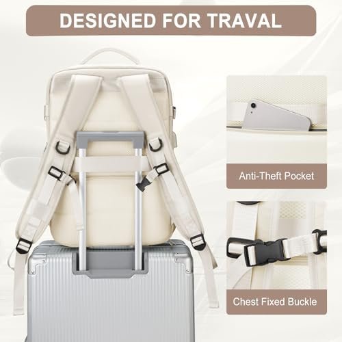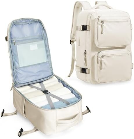 Dimension & Airplane Friendly: Size 45x32x18cm, 1.1kg weight. It can be placed under seat. The travel backpack is made with lightweight waterproof and tear resistant high density nylon fabric lining with great performance of wear-resistant, waterproof, wrinkle-free. There is a luggage strap on the back side of this travel backpack facilitate your travel/business trip, free up your hands and shoulder