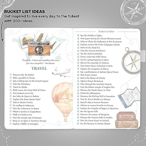 PRESERVE PHOTOS & MEMORIES FOREVER – Record your favorite moments, add photos, and describe your emotions to make memories last forever. This way, your bucketlist book will become a a unique diary brimming with fun adventures and stories to share.