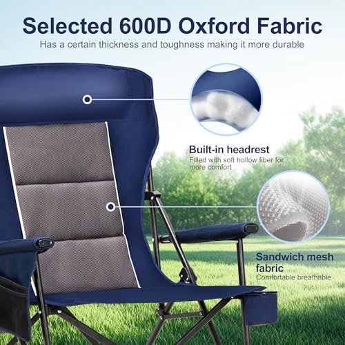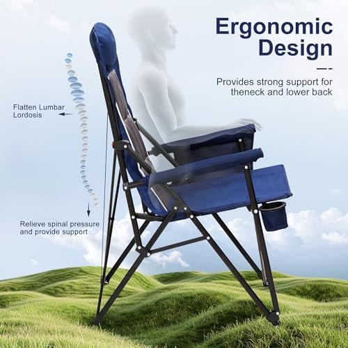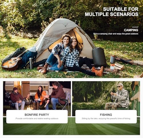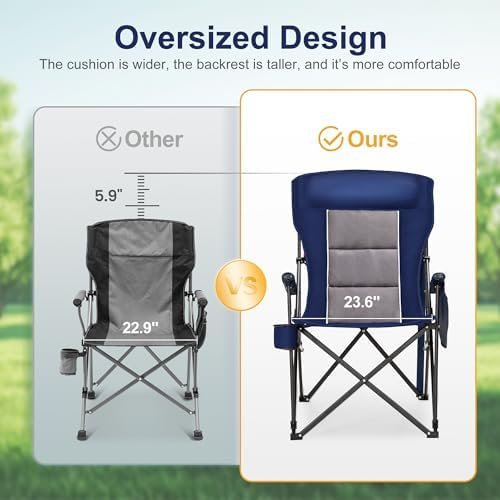 Bigger & Wider Design: Our newly upgraded camping chair is larger and wider than most on the market. With dimensions of 42.91*29.33*26.57in, it’s perfect for bigger folks and can support up to 500 lbs.