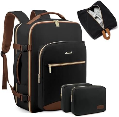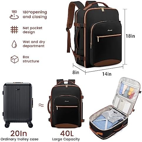 🧳【40L LARGE CAPACITY】Our travel backpacks enable you to pack all your travel essentials for a 3-5 day travel, which can hold 3-5 days’ clothing, a pair of shoes, your wallets, toiletries, a 17.3” laptop, a 12.9” iPad and so on. The side straps can also help you compress the pack when it is too full.