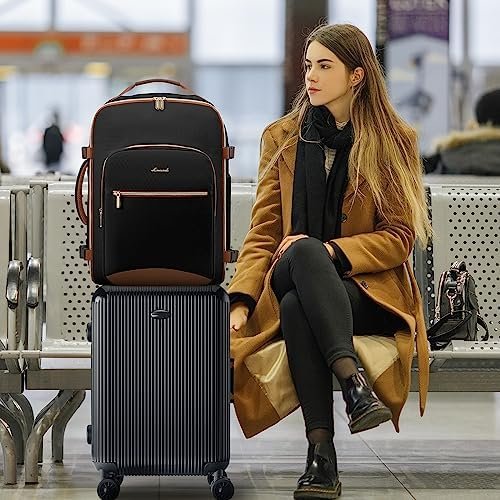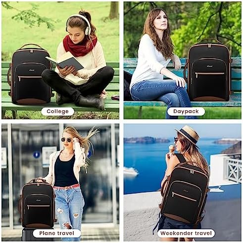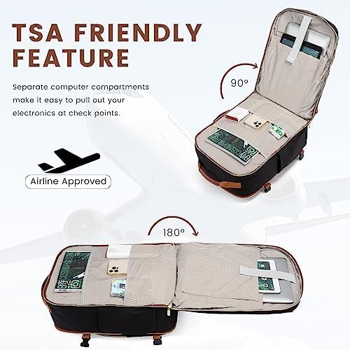 ✈️【BACKPACK FOR TRAVELING ON AIRPLANES】With an 18*14*8 inches size, this travel backpack meets the standard of personal item bags of airlines. It can be put on the luggage set and under the seat easily. The luggage strap on the back of the backpack allows it to be stably attached to a suitcase.