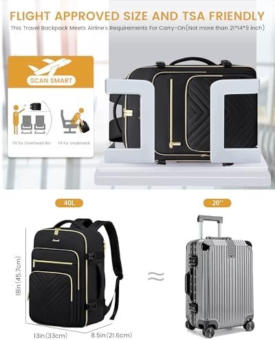 【Airline Approved &TSA Friendly】Size: 18*8.5*12.5 inch (L x W x H). Compact and practical, this carry on backpack fits under the seat or in the overhead compartment, approved by Spirit, Frontier, JetBlue, and other budget-friendly airlines. It can be opened freely 90-180 degree during the airport security.