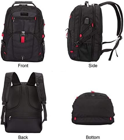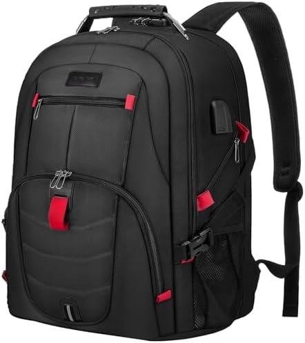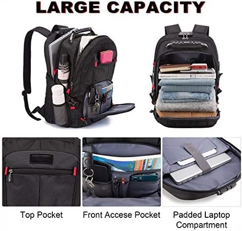 The laptop backpack has an oversized capacity of 55 liters and can hold clothes and other travel essentials. This black back is perfect for traveling. It can also be used as a work backpack for men or teacher backpack.