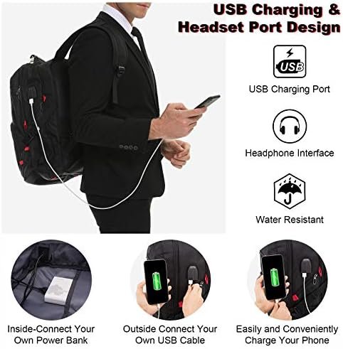 【CONVENIENT USB&HEADSET PORT DESIGN】 Laptop backpack offers a convenient USB charging port outside. Great for charging your phone or other electronic devices while walking. (Please note that the power bank is not included in this USB laptop backpack). And the headphone interface frees your hands when enjoying audios, music, etc.