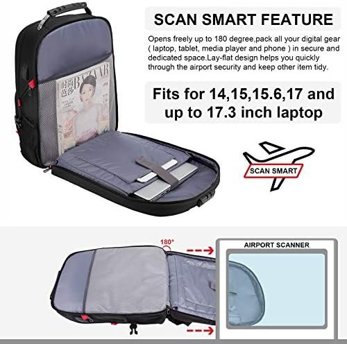【ANTI-THEFT DESIGN & TSA FRIENDLY】 With Fixed Password Lock and Durable Metal Zippers, our 17 inch laptop bag is safe guaranteed for protecting your valuable items inside. No need to worry theft easily opening your backpack when you are travelling or lining up.With the instruction card,you don’t need to worry about forgetting your code. And lay-flat design is for easily organized and get your items via opening up to 180 degree when through the airport security.