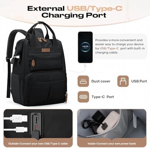 Charging Port Design:This 17 inch laptop backpack features a USB and Type C charging port on the exterior, and built-in a charging cable inside, providing a convenient and accessible way to charge your phone while on the move. There are 2 kinds of interfaces, which can meet the charging needs of different devices.