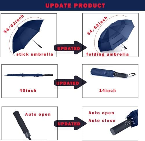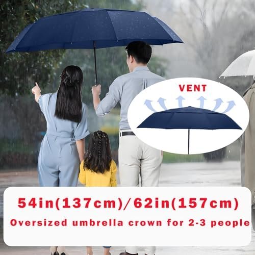 MRTLLOA 54/62 Inch Large Folding Golf Umbrella, Oversize Double Canopy Vented Windproof Travel Umbrellas for Rain