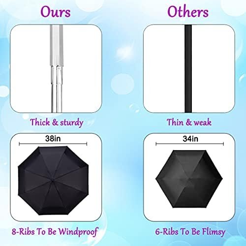 STURDY CONSTRUCTION – Unlike other mini umbrellas made of 6 ribs,our compact umbrella is made of 8 ribs.And the shaft is designed thicker than other ordinary 6 or 8 ribs umbrellas.So,this compact travel umbrella can withstand the normal heavy wind/rain and make sure that it won’t easily to flip out inside easily.