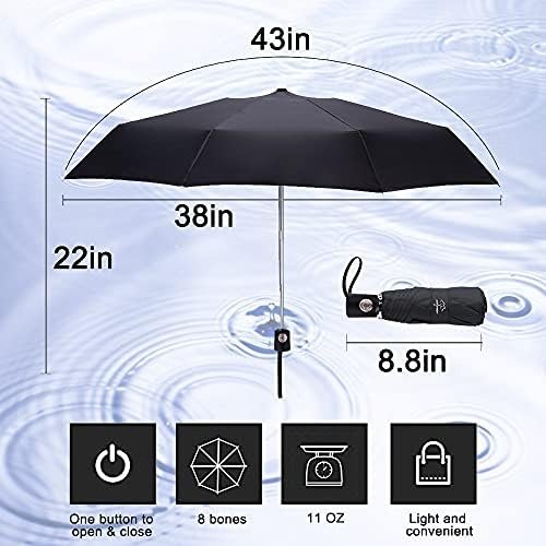 AUTOMATIC OPEN AND CLOSE – No more struggling with finger pinching release mechanisms.The Travel Umbrella features an auto open and auto close mechanism so all you have to do is simply touch a button on the ergonomic rubberized grip handle to expand and collapse the canopy making walking through the rain a breeze.This is the last umbrella you’ll ever need.