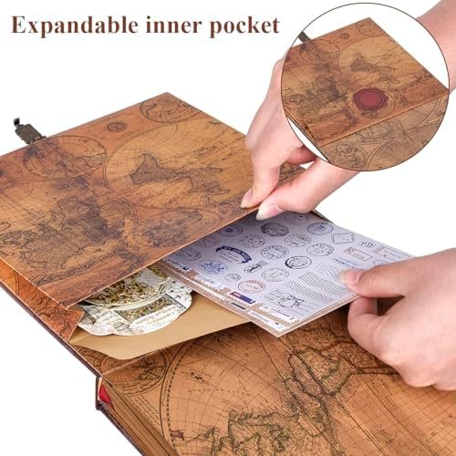 CONVENIENT STORAGE : Features a practical craft paper bag on the back cover for storing mementos such as tickets and stamps, making it ideal for documenting adventures and preserving keepsakes, and other memorabilia to keep your memories organized and intact.