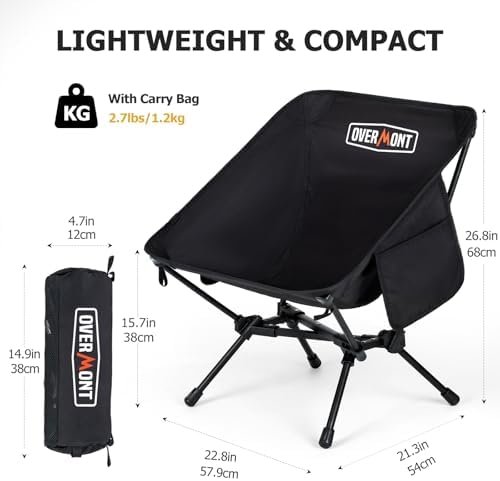 Ultra-Portable and Lightweight Backpacking Chair: Measuring just 16.5L6W6H when packed, Overmont portable camping chair is incredibly compact. It comes with a high-quality, durable carry bag, making it perfect for hiking, camping, or beach outings. Despite its compact size, it provides reliable comfort and support, ensuring you can relax anywhere with ease.