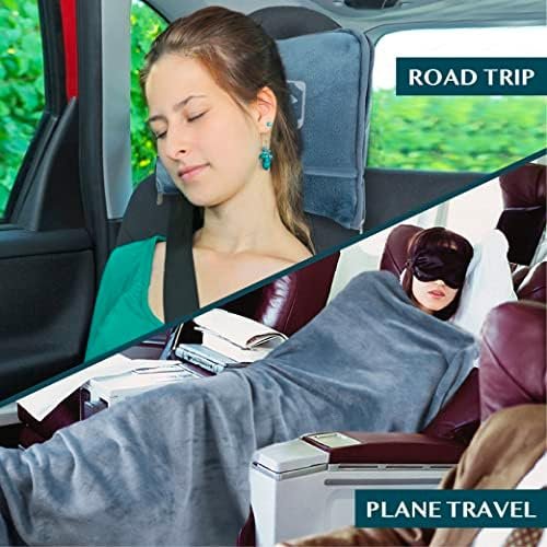 SOFT COZY TRAVEL BLANKET – This compact airplane throw blanket is packable and portable, designed for traveling, flying, camping and road trips. This plane blanket is plush and warm, keeping travelers warm through long flights and road trips. The travel blanket folds compactly into a pillowcase for easy storage. An ideal air travel accessories gift for women, men, adults, kids and toddlers. Perfect for sleeping on the plane, car, bus, train, airport, home, office and emergency use.
