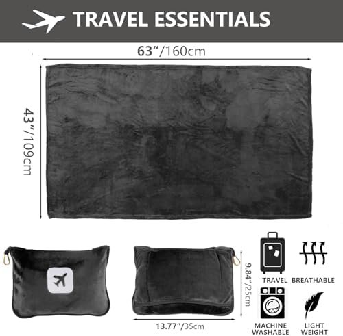 Easy to Carry: This travel pillow and blanket set for airplanes measure 63 “length X 39 “width, which won’t take up too much space. The hand luggage sleeve on the carrying case allows you to easily attach it to your suitcase. The travel bag comes with hooks for easy hanging on backpacks and handbags. The travel plane blanket can be machine washable and dryer safe.