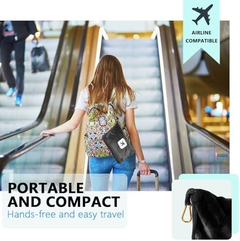 Premium Material: The travel blanket is made of high quality flannel fleece, which is soft to the touch and keeps you warm without static. At 65” in length and 40” in width the ultra cosy airplane travel blanket is large enough to keep you and your friend warm.