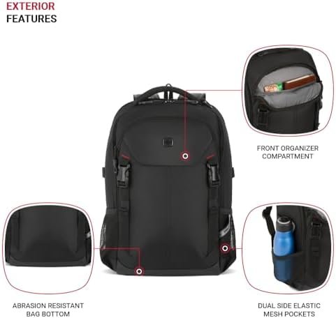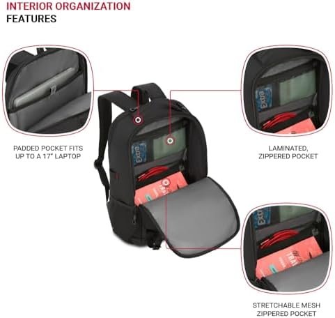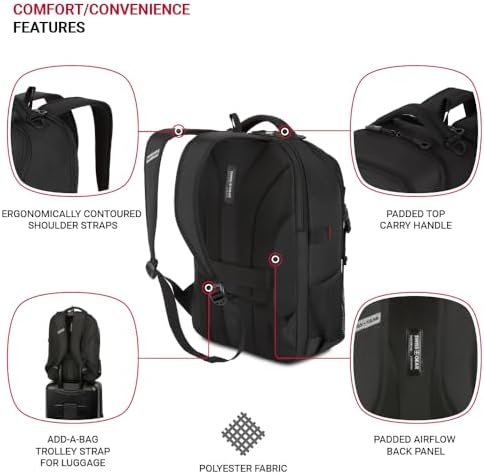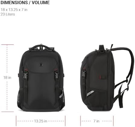 SwissGear Civic Pro Laptop Backpack, 18” x 13” x 6”, Fits Most 16-Inch Laptop, Black.
