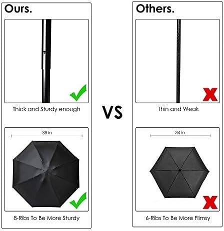 Sturdy and Smooth Design: Made of 8-ribs alloy come with a mental shaft, this umbrella is well constructed for you to use smoothly. Closing and opening is manual, An Velcro strap keeps it closed nicely when close.