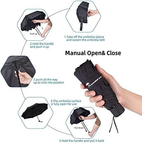 Ultra Lightweight and Compact: Elaborate craftsmanship makes this umbrella weigh only about 10.22 oz. Mini design allows this umbrella short enough (7.64 inch) to fit perfectly in your bag. Light and small, this umbrella is perfectly portable for anyone!