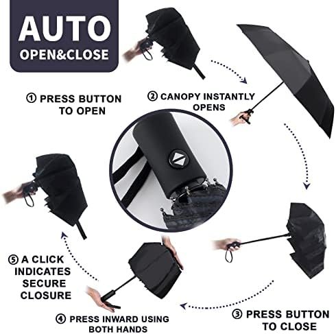 Fully Automatic Umbrella : Auto open and close umbrella can handy for quick entry into a car, building or tent. You can quickly open or close the travel umbrella at the press of a button