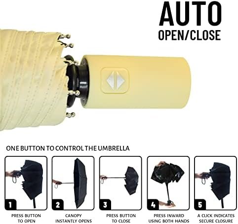 Auto Open and Close: You can open your umbrella by your thumb, so its very convenient when you get out of car in the rain or when your hands are full of stuff. Just press the button once to open the umbrella and press the button again to fold it immediately.