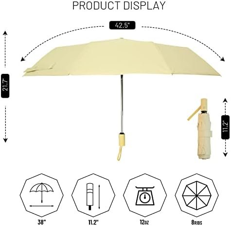 Easy Carry: The upgraded umbrella frame design makes this umbrella a shorter folding size that can easily fit into briefcases and handbags. In addition, the umbrella is made of upgraded lightweight materials, making it lighter in weight and reducing your travel burden.