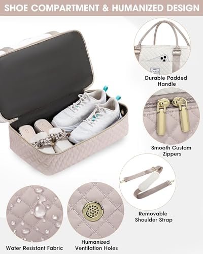 【Overnight Bags with Shoe Compartment】:Separate flat bottom compartment of this overnight bag for women can hold your shoes or dirty clothes for easy separation from clean clothes when traveling. Keeps you organized and takes the hassle out of packing. The ventilated shoe compartment that helps to disperse bad smells.