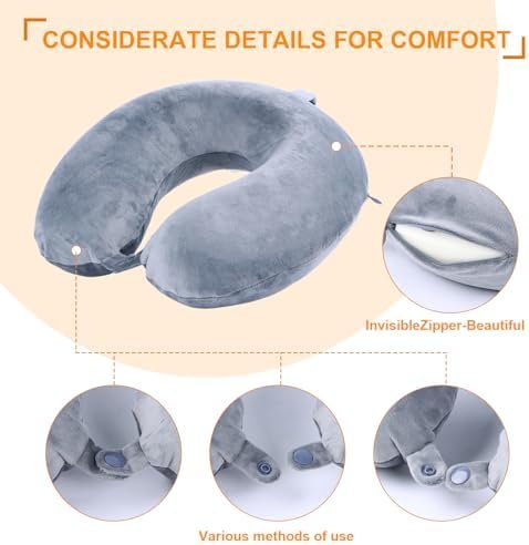 ✈ERGONOMIC RAISED LOBE DESIGN – Standard U shaped neck pillows do not offer support for neck tilt from side to side, but the Far win neck pillow is designed with orthopedic raised lobe contouring on either side that allow your neck and head to lean comfortably against the soft yet supportive memory foam cushion. Ideal for sleeping in your seat during long plane flights or sitting upright in any type of chair.