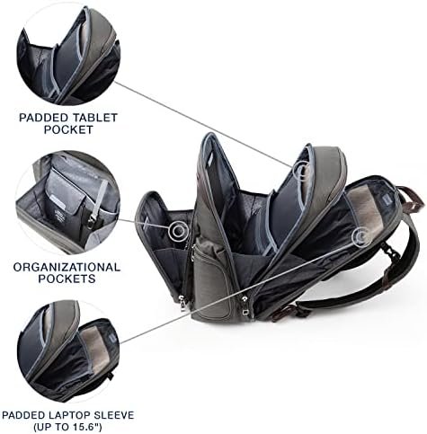 Padded laptop (up to 15.6″) and tablet sleeves protect electronics. RFID-blocking pocket keeps credit cards and passports protected against loss and identity theft.